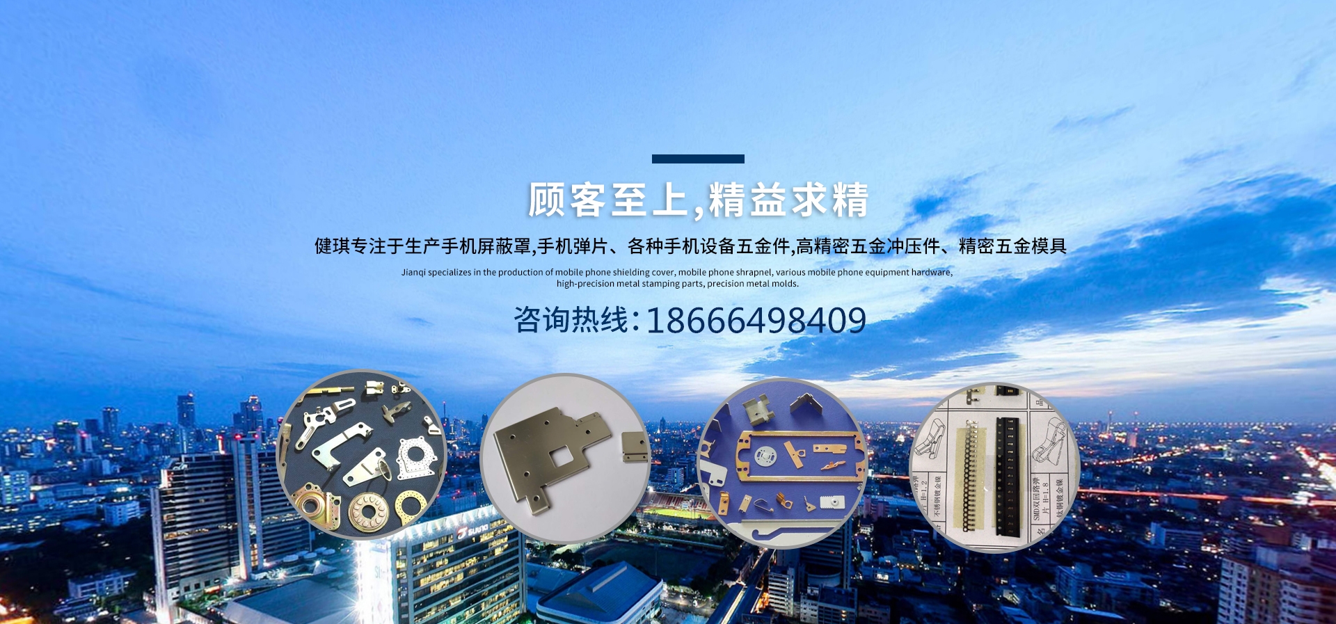健琪專注于生產(chǎn)手機(jī)屏蔽罩,手機(jī)彈片、各種手機(jī)設(shè)備五金件,以及高精密五金沖壓件、精密五金模具。宜賓市健琪精密五金制品有限公司一直以“顧客至上,精益求精”為指導(dǎo)思想;以“質(zhì)量第一,持續(xù)改進(jìn)”為公司的最宗旨;以“以客為尊,以人為本,共同發(fā)展的管理理念;以“高效,創(chuàng)新,團(tuán)結(jié),感恩”為企業(yè)精神。與客戶、全體員工一起成長(zhǎng)!歡迎各界朋友蒞臨參觀、指導(dǎo)和業(yè)務(wù)洽談。